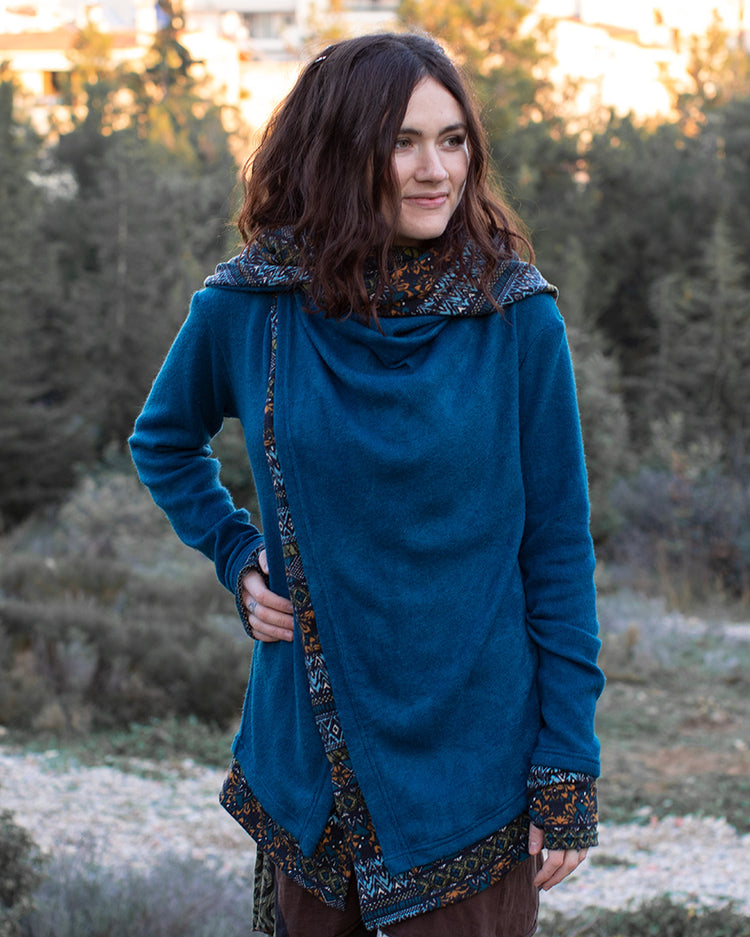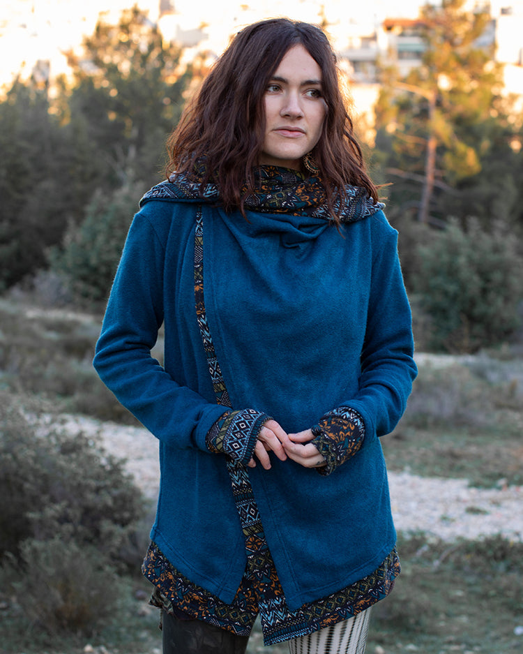 A unique tribal design cardigan jacket with a psychedelic Aztec patten.